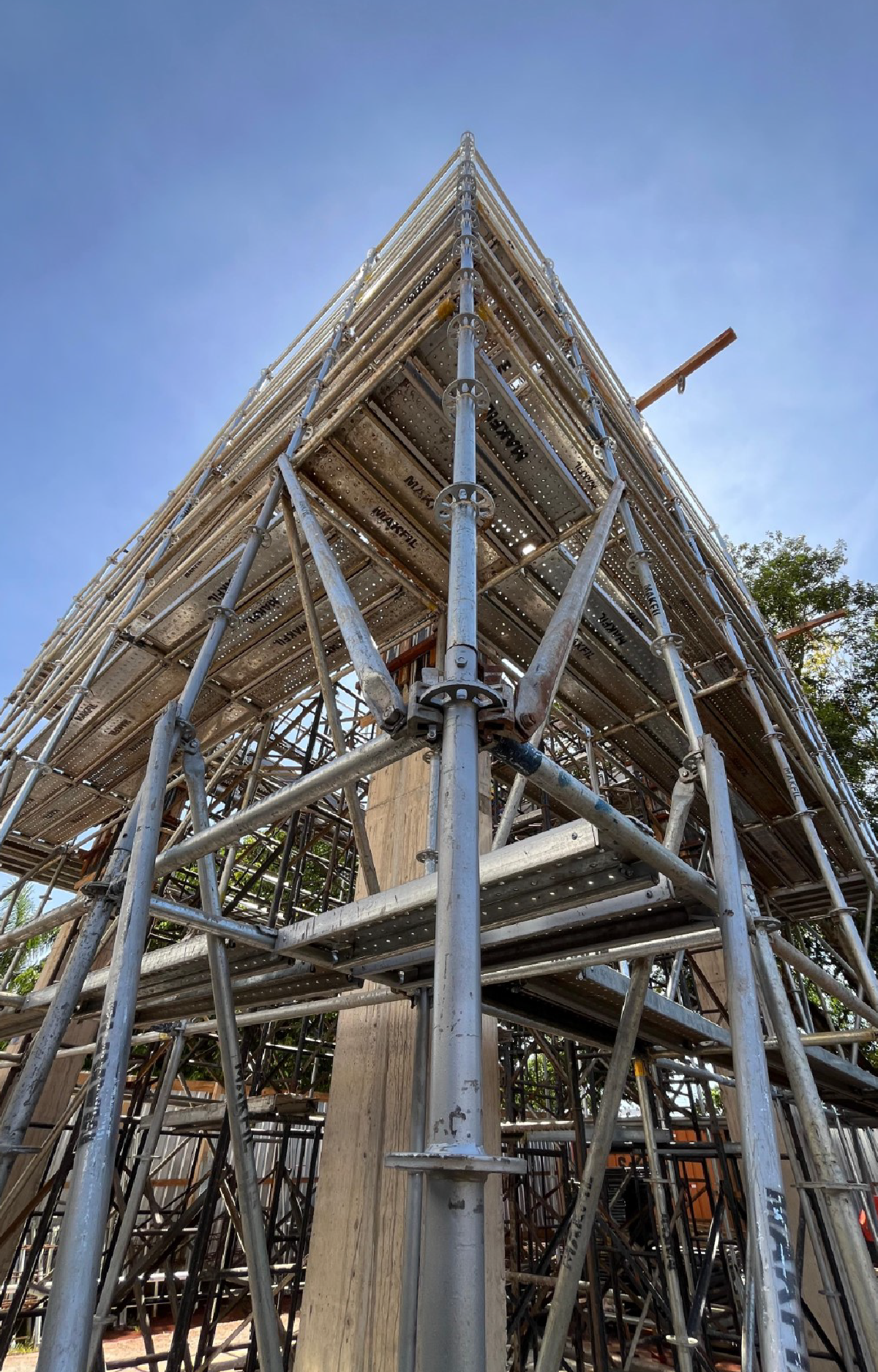 Dependendo do projeto, o escoramento pode ser montado com escoras, torres ou até com sistema multidirecional, quando há necessidade de adaptação.