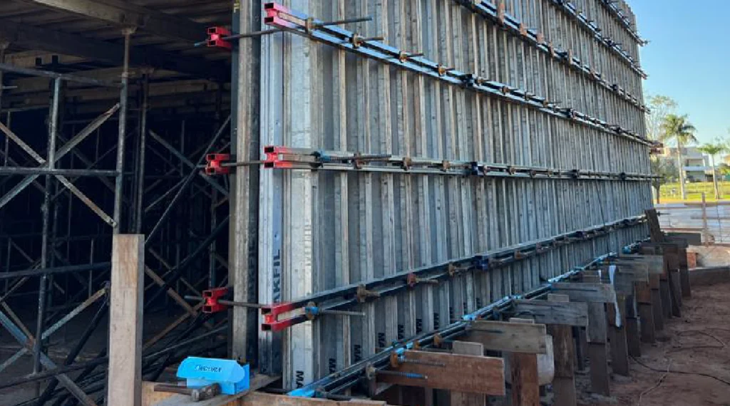 Dependendo do projeto, o escoramento pode ser montado com escoras, torres ou até com sistema multidirecional, quando há necessidade de adaptação.